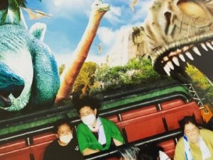 ジュラシックパークザライドは想像以上に急角度で勢いよく落ちたので焦りました。